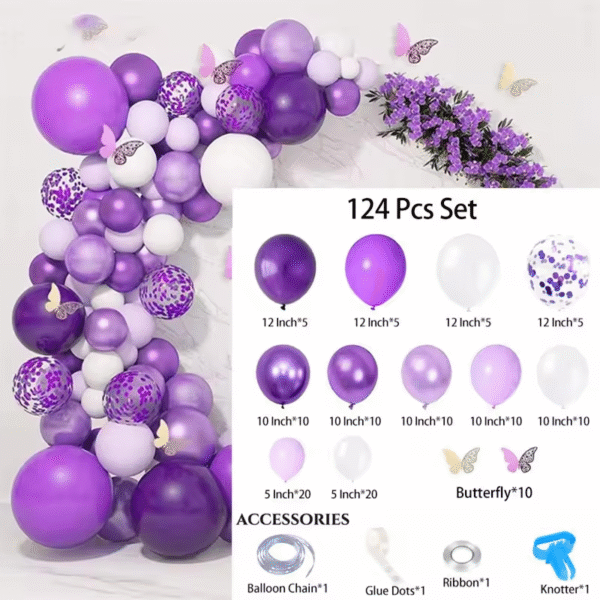 Arche de Ballons Violet pour Anniversaire 124 pcs