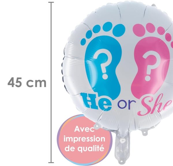 Ballon Gonflable Hélium « He or She » Ø 45 cm – Parfait pour Révélation de Genre et Baby Shower