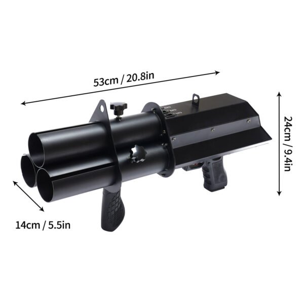 Le pistolet à confettis est à commande manuelle et dispose de 3 canaux, chaque canal peut contrôler chaque tuyau de pistolet, facile à lancer selon les exigences du client.